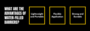 A water-filled plastic barrier is an ideal choice for short-term roadwork projects and for use in and around events. The biggest benefits of water-filled plastic road barriers are: